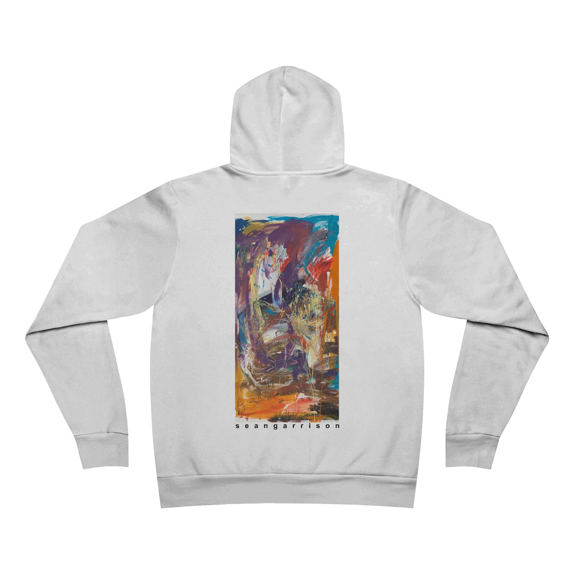 The unisex sponge fleece pullover hoodie is a blend of Airlume cotton and polyester. The percentages vary according to color. A pouch-style pocket spreads across the lower half of the garment’s front. The hood can be tightened with a white drawcord. Both cuffs and waistband have ribbing for extra grip.