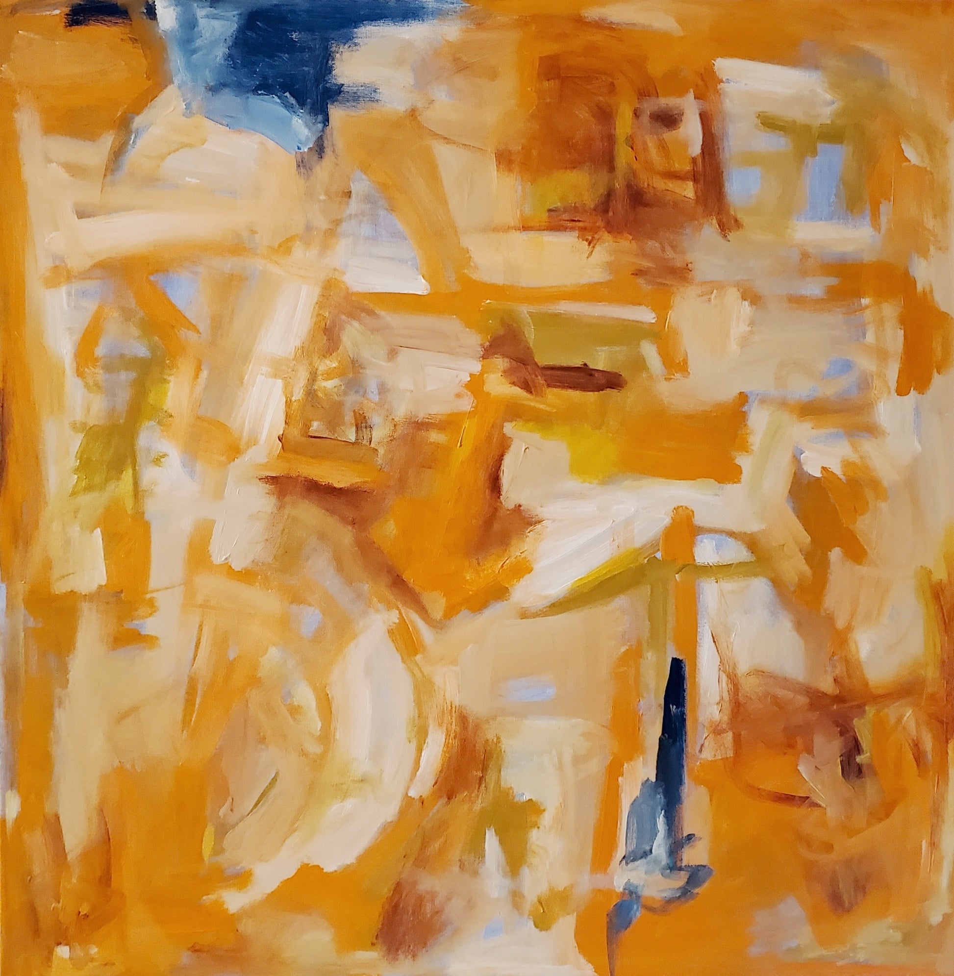 Original. "Sunny Day in the Storm" is a 36x36 arylic on canvas painting. It speaks to movement of the lively, hopeful, faithful spirit that exists when it's raining around us.